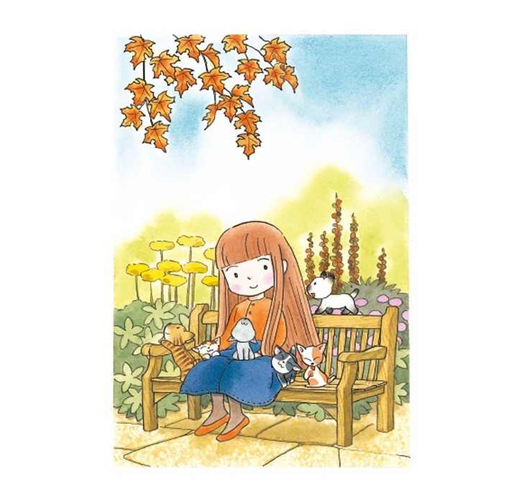 花園的正中央,有一棵高大的楓樹,樹下面有一張看上去很舒服的長凳,長凳上正坐著一個長髮女孩。