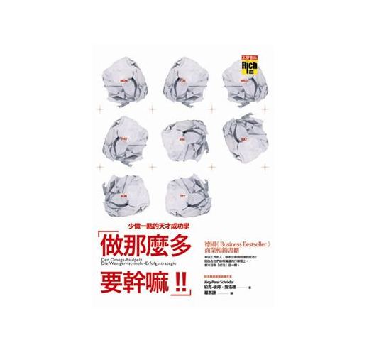 來自各界的佳評「成功和辛勤努力無關,應是正面積極的基本態度使然。心情愉快、少做一點,才是成功之策。」~《經濟與社會線上雜誌》「施洛德向來都不按牌理出牌,這次他提出:『辛苦工作的人,根本沒有時間獲得成功』更是讓人印象深刻……,書中每一個字都教我們如何輕鬆工作並獲得成功。」~《BusinessBestseller》書評「非常值得一讀,就如何改變自己的生活給予許多實用的建議。非常值得推薦!」~德國教練顧問交流服務網站「……,本書當然不能說是成功幸福的食譜,但是對於如何主動塑造生命,這類的訣竅應該沒有人會嫌多,而書中就充滿了這類的妙方。」~德國教師圖書館「作者以實際的例子告訴我們,工作狂如何透過減少工作量變得更快樂。」~雷根斯堡市工業貿易協會