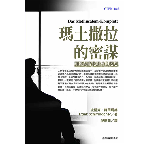 人類社會正以超乎想像的速度老化中!在全世界的已開發國家都逐漸邁入高齡化社會之時,本書作者藉著新的科學研究知識,以及聖經上活的最久的人:九百六十九歲的瑪土撒拉作比擬,設計出一套對抗「老年歧視」的密謀,對高齡化社會提出新的觀點及建議,建立「新的年齡文化典範」,創造出完全相反的年齡觀點:不論在藝術、生活或科學上,老年是一種變化,而不是一種災難。