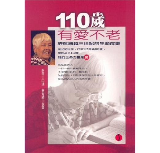 《106歲,有愛不老》曾經感動了許多人,許哲女士無私將自己完全地奉獻給老人與窮人,不求回報。如今,這動人的故事又繼續了三年,今年剛度過109歲生日的她,已正式邁入第110歲的人生。再版的《110歲,有愛不老》,除了附上近幾年許哲女士遊歷台灣及接受熱愛生命獎章的照片之外,也附上了她親寫的中英文自序,以及義子忠義所寫的序文。