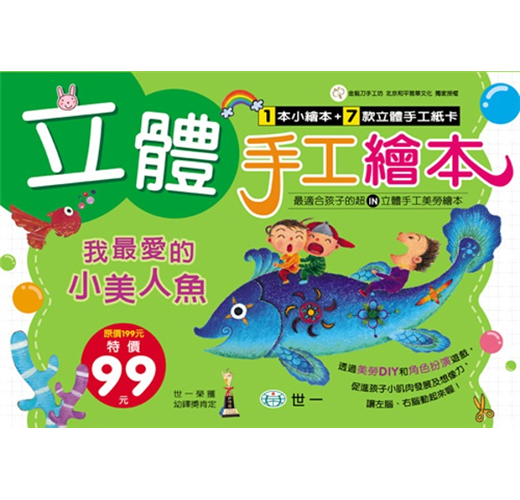 本書共12頁,以童話「小美人魚」為主題,內容包括童話小書製作,以及小美魚、王子、巫婆、王子的船、宮殿等手工製作圖卡,除了能讓孩子了解「小美人魚」的故事內容,還能體驗親手製作立體紙藝品的樂趣,學習拆、摺、拼、貼等美勞技巧,同時訓練手部小肌肉的發展與手眼協調能力,建立立體空間及基礎藝術概念;製作難易度由淺入深,每頁作品可以獨立操作,也可以聚集成為好玩的組合遊戲,是增進孩子藝術美感及親子互動的優質產品。