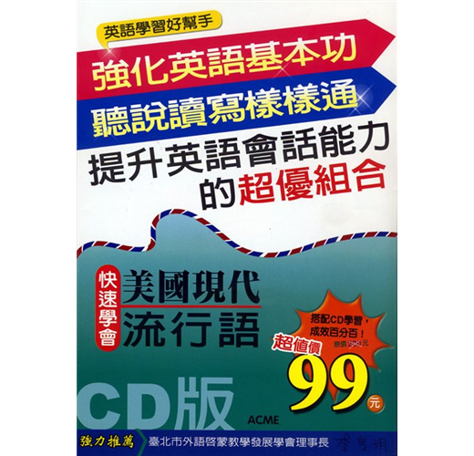 本書收錄美國現代流行用語,介紹美國人日常生活和風俗習慣等方面的實用會話句型,以對話實況的方式呈現,內容豐富,舉例量多,書後並附練習題,讓讀者隨時檢測學習的效果,另附CD2片,幫助讀者提升美語能力。