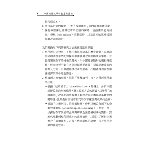 自1978年底進行放權讓利的改革開放以來,迄21世紀初,中國經濟成長數據亮麗。不過,在光鮮外表下,是否隱含著什麼重大危機呢?真的是金玉其外,敗絮其中嗎?中國經改的真相到底如何?赴中國投資是機會或陷阱?與中國經貿關係密切是甜蜜或糖衣毒藥?本書由產權理論切入透視中國經改,在理論和實際並重的內容中,提供讀者們思索這些重大問題的答案。