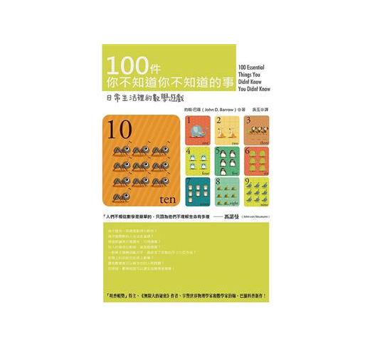 數學可以幫助我們理解這個世界,而這些是無法用其他方法學習到的。包括最基本的物理原理和廣大的天文宇宙知識,都需要數學來解讀。這本資訊豐富、饒富趣味的著作,解答了100個關於生活的重要問題,用簡單的數學概念解釋這些事物形成的原理。著名物理學家和數學家巴羅闡明錯綜複雜的難題,釐清困惑,揭露未解的謎題。