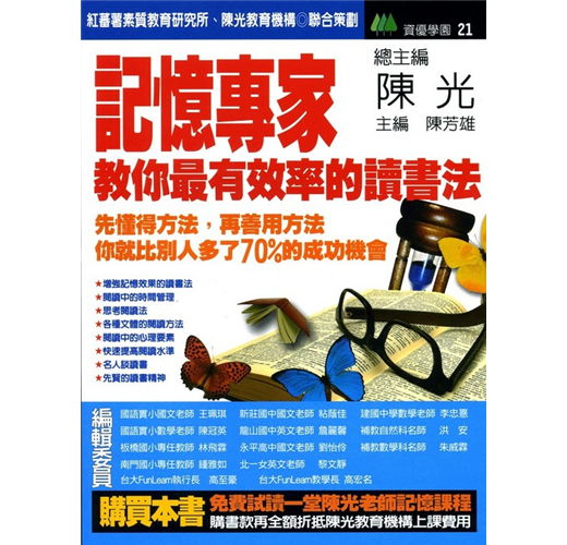 本書的適讀對象除了在校的學生,也適合於社會上從事各行各業的人群,以及欲將自己的孩子培養成為讀書高手的父母們。