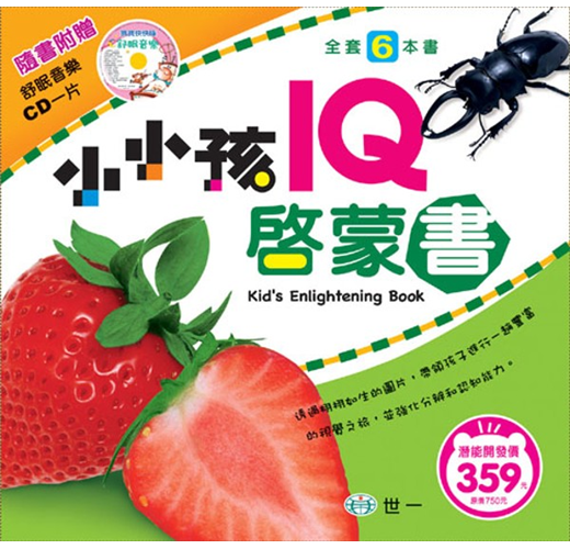 本套書包含<小小孩的動物書>、<小小孩的昆蟲書>、<小小孩的水果書>、<小小孩的蔬菜書>、<小小孩的個人用品書>、<小小孩的交通工具書>六本書。每本書均附加大尺寸的實物照片以及正確的中英文名稱,色彩鮮豔、圖案可愛,不但符合孩子視覺感官發展的需求,建立基本認知,還可讓孩子學習中英文名稱;小小孩的知識專區則提供親子密切互動的機會,是陪伴幼兒成長的最佳套書。