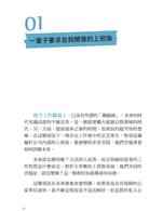 無法因應時代變化的人會遭到淘汰能引領變化走向未來的人才能生存未來的人才不是安於現況的人,而是未雨綢繆的人他們透過不斷地自我開發,培育自己的核心力量不管你選擇在公司中服務,或是獨立門戶自己創業,你都需要具備「解決問題的能力」。在職場上,當你面對各式各樣問題時,你必須有能力提出解決之道,這項能力是未來成功人才必備條件中最重要的一項。掌握趨勢也和解決問題的能力相關。我們都清楚知道一個事實,通才型的工作職缺有越來越少的趨勢,只具備一般能力而非專才的人,在工作職場上的容身之處也越來越狹窄。因此,我們可以預見不久後的未來,對於能解決特定問題的專家需求,有越來越多的趨勢。如果專家除了專精自己的領域外,還對其他領域有基本的知識,那當然是再好不過。即使只專精自己的領域,不熟悉其他領域,對於未來人才來說,也已經具備了基本的門檻條件。解決問題+創意發想+抓住機會+學習+動機賦予+自我創新+危機管理+人際關係+銷售+外語能力不回顧過去就無法把握住現在。有時人們只注意眼前的事物,但是現在的成果中,有一部分是從以往點滴的投資和努力所換來的成果。同理可知,未來的某項成果,也是把以往到現在、延伸到未來某個時間點的所有努力投資加總,也就是,我此刻決定要投資的金錢、時間和精力,將會左右我往後的人生。