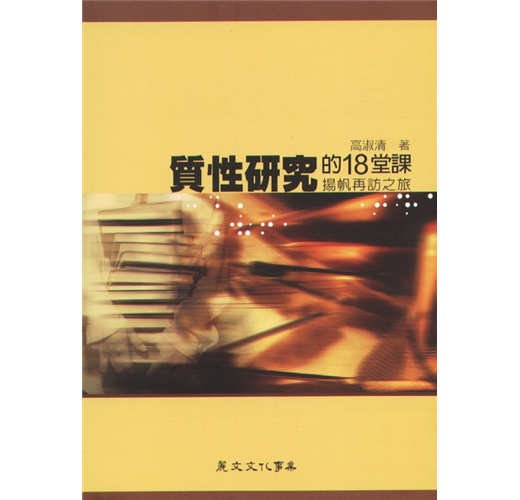 Part IV: 體驗質性寶山中的驚豔之旅 第10堂 回歸事物本身的現象學方法:重回母親的懷抱 第11堂 在循環理解中探尋意義的詮釋學 第12堂 探究生活經驗的詮釋現象學 第13堂 俗民誌研究:來自祖靈(文化)的呼喚 第14堂 批判理論:犀利辯證中見真章 第15堂 紮根理論:肩負建立理論之使命 第16堂 行與知俱的行動研究法 Part V: 走過質性旅程的體悟與執著 第17堂 質性研究的寫作與再寫作歷程 第18堂 旅程迴響:再思倫理議題與共融關係
