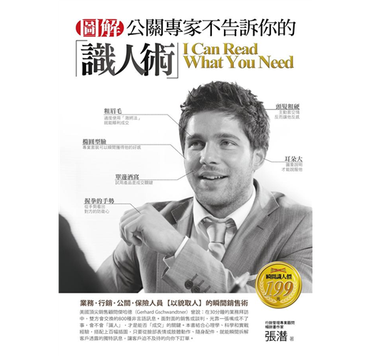 在業務洽談中,如果你不能在第一眼就得到客戶的注目,或表現的和其他業務、銷售人員有所差異,憑什麼期望自己能得到比別人更好的機會?所以,身為業務或銷售人員的首要工作,就是檢視自己,是否擁有與客戶第一次見面時,就讓他對你產生好感的能力?否則,無論花再多力氣,都是白費工夫。本書彙整心理學研究與作者多年的實戰經驗,搭配一百多幅的圖象解說,呈現最完整、最實用的知人知面知心超強識人術,告訴你,如何藉由觀察客戶的五官面貌、肢體動作、裝扮配件等,在初見面時,就能瞬間讀出客戶身體隱藏的訊息,看穿客戶真正的心理需求,進而投其所好,讓客戶對你產生信任與好感,CASE當然接不完。