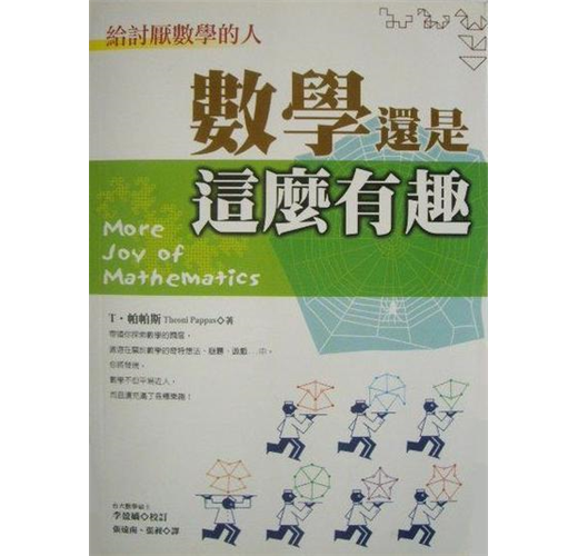 數學,因其「抽象和枯燥」的外表,令許多人望而卻步。其實,這是一種被誤導 的觀念。數學,她不僅是一門精深的學問,需要人們去探索、去研究;她更是一 種博大的文化,需要人們去傳播、去弘揚;她還是一種有效的工具,需要人們去 掌握、去運用;她又是一曲美妙的樂章,需要人們去品味、去鑒賞。然而,要使 人對數學從沒興趣到有興趣,從不瞭解到瞭解,從不會用到會用,卻是一門高超 的藝術。 美國數學教師、文學碩士 T‧帕帕斯女士的著作《原來數學這麼有趣》 及《數學還是這麼有趣》,無疑做到了這一點。 有道是「興趣是最好的老師」 ,《原來數學這麼有趣》及《數學還是這麼有趣》 ,緊緊抓住興趣這條主軸,透過上百個簡單明瞭而又各自獨立的佚聞、趣話、遊 戲、故事、構造、技巧,在探索中深入問題,在介紹中剖析思路,在評述中展示 前人艱難跋涉的足跡,使讀者在閱讀中,體會創造的艱辛,認識失敗的教訓,分 享成功的喜悅,並在不知不覺中對數學潛然而生興趣和喜愛。 書中圖文並茂,古今兼容,融方法於故事,寓知識於趣味,內容生動,文字流暢 ,材料充實,通俗易懂,誠所謂:集數形之所見,取天地之精華。對各種層次的 愛好者,仁智各見,看後都將會有所俾益。 譯者長期從事數學教育,並致力於「透過非教學手段,實現人類智慧接力棒傳遞 」的艱苦探索。T‧帕帕斯女士在使數學非神祕化方面的出色思路,是如此深刻地 印記入譯者的腦海,並與之強烈共鳴。以致於決心嘗試將其代表作譯成中文,與 廣大讀者分享。 最後要說明的是,譯者對書中的不少地方作了注釋。我想,這將有助於讀者瞭解 正文的出處、思路、背景和演化。此外,原文中存在的一些非實質性和印刷上的 錯誤,都已在譯文中作了訂正,恕不一一羅列。 目錄 前言 2 譯者序 3 海波的數學 13 四維立方體的展開 17 七巧板 18 畢達哥拉斯定理的一種優雅證明 22 令人困惑的無窮大 23 化圓為方問題的一種變形 26 一些逗人喜愛的謎題 27 數的一種令人驚奇的性質 28 斐波那契迷 29 的一個神奇的公式 30 超空間──一種消失現象的數學 33 自生的黃金三角形 36 折一個橢圓 37 折出雙曲線 38 魔術般的二元卡 39 憋棋 40 埃及的腕尺、掌尺與指尺 41 大數──隱藏的解答 42 電腦製作模型 43 單人棋謎題 45 盒子的解構──賴特的建築學 46 小數值的繼續 48 精確地刻劃地震50 馬雅人的數學52 手性──用手的習慣57 混沌理論──在混沌中有序嗎?59 6-6折變形64 對稱──數學的均衡行為66 質數與可除性檢驗69 愛因斯坦的手跡71 帕斯卡三角形的一些性質72 鐘擺73 三層的莫比烏斯帶77 來自大海的數學寶藏78 數學的結81 折變筒86 富蘭克林的幻直線87 「0」和「零」的創始88 星盤89 八個棋子的謎題90 棒條遊戲91 圓幫了狄多女王的忙92 割圓曲線──解三等分角和化圓為方問題的曲線93 卡洛爾的窗戶謎題94 碎形時間95 碼與密碼96 太空望遠鏡──數學的錯誤使哈伯望遠鏡的目標偏離 數兆英里102 森林火災的數學104 的早期估算與表示式105 畢達哥拉斯三數組107 跨出畢達哥拉斯定理的一步109 打一個多邊形的結111 黎曼幾何的世界112 孿生雪花114 電腦與藝術115 阿基米德怎樣三等分一個角119 碎形雲121 碎形與蕨類植物122 數的發展123 三部接合──自然界的一種數學現象128 多邊形數131 調和三角形132 洛依德天平之謎133 統計學──數學的巧妙操作134 咖啡杯與甜甜圈的數學137 數學式的家具138 作矩形的謎題141 質數的幾何解釋142 作一個8 8幻方143 畢達哥拉斯定理的反題144 每一個三角形都等腰嗎?──你能找出毛病嗎?146 在完全數的探索中148 的動態矩形150 莫比烏斯帶探奇151 奧維德遊戲156 石器時代的數的式樣159 九點圓160 建築學與數學162 《易經》與二進制系統165 天體的音樂167 歪像藝術168 測量問題169 一幅文藝復興時期的幻覺作品170 倒轉171 羅密歐和茱麗葉謎題173 什麼是「平均」?174 數學間的關聯176 質數的特性181 的非同小可183 行星的不尋常軌線184 骰子與高斯曲線185 數學在「萬有理論」中的作用186 數學與地圖繪製189 螺線──自然界中的數學191 不尋常的等角螺線193 測試愛因斯坦的廣義相對論195 產生三角形謎題197 費瑪大定理──已證還是未證?198 莫比烏斯帶、 與星際旅行200 朋羅斯瓷磚201 數的位置值系統──來自何方?206 你出生在星期幾?209 一個超立方體的投影211 愛因斯坦的「隱私」212 數學洗牌法214 數學與迷信215 數學、碎形與龍217 重疊正方形問題221 武士刀中的指數方冪222 反雪花曲線223 混合數學與棒球──高技巧棒球224 克里特島人的數226 艾達與電腦程式設計228 亞里士多德的一項成就231 暗箱232 一種古希臘的電腦?235 模數──算術的藝術237 形狀與顏色謎題239 =整數?240 帕斯卡(算術)三角形的圖案241 船塢問題242 俄羅斯農夫的乘法24
