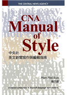 為讓淬鍊多年的寶貴經驗分享與傳承,特以有系統的方式編成CNA Manual of Style-中央社英文寫作與編輯指南,內容豐富、實用。財團法人語言訓練測驗中心主任高天恩推介本書「不僅是英語新聞寫作者必備的案頭書,對於台灣的英文學習者而言也是極富實用價值的參考書」。他認為:「書中許多具地方特色的新聞用語,對許多苦於不知如何向外國朋友介紹台灣特色的人士而言,更是不可多得的良助。」