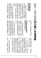 另外,也可以用下一頁的計算公式,計算自己的適當心跳數,參考該數值調整運動步調。步調太快就放慢腳步,步調太慢就加快腳步。重點就是「不那麼累的程度」,才能有效吸收氧氣,對燃燒內臟脂肪來說效果最好。最標準的程度就是稍微出汗,有點上氣不接下氣的感覺。只要遵守這些原則,任何人都能輕鬆、長期地運動下去。