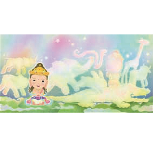 以精緻電腦彩繪,展現彌勒佛的莊嚴兜率淨土,並將動物生態做一活潑設計構圖,讓真實的動物出現在充滿奇幻感的不同場景:天宮、雲海、馬戲團、森林、河流、花海迷宮……。畫面豐富生動,充滿故事感。