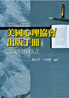 目前APA格式被許多機構列為學士論文、專題報告和期刊文章的遵循格式。本出版手冊是說明APA格式的專書,包括論文的編輯格式及投稿時所遭遇到的問題,內容詳盡且有系統,希望能給予作者、編輯者、學生、打字者、出版者等人更有助益的指引。