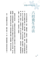 把氣功、太極拳、打坐及瑜珈的基本精神融合起來,濃縮成「六招養生功法」。