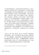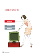 ◆ 設計習慣之養成:平時日常生活中就應該要養成的設計習慣,像是收看新聞、攜帶相機、善用部落格等等,看似你我每天都接觸得到的瑣事,但被賦予全新的意含之後,你會發現,這些就是成為設計經營者的基本功。