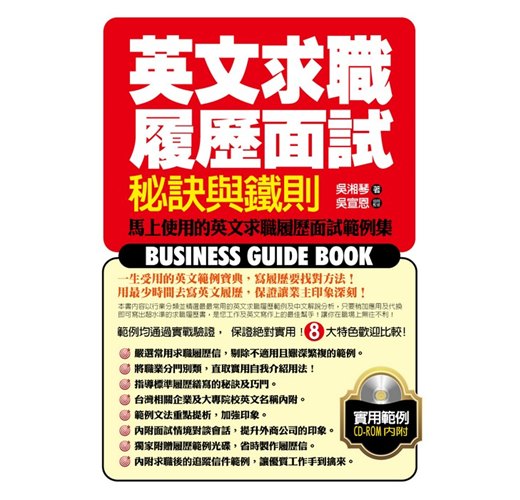 特色 1、嚴選常用求職履歷信,剔除不適用且艱深繁複的範例。