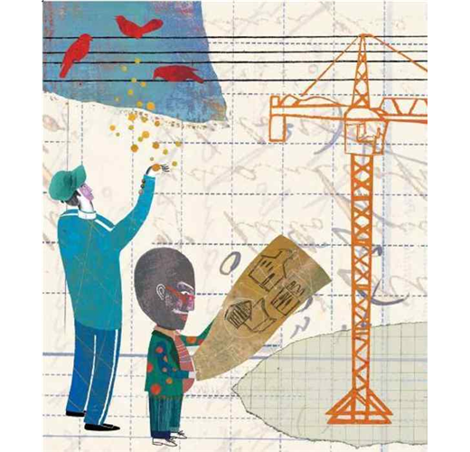 出生於義大利,在米蘭主修設計和插畫。《造房子的史密斯先生》融合了水彩畫、硬筆畫和拼貼畫等多樣技巧,特別著重於自然與人工、過去與現在、古早與新穎的對比表現。作者用被紅色啄木鳥啄頭的史密斯先生,象徵著找到嶄新生命意義的心聲。