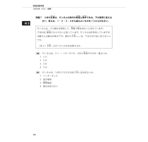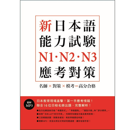 在日本錄製的MP3,從對話情境、唸題速度到停頓秒數,完全比照新日檢聽解考題。考生不但可藉此熟悉聽解速度,還可掌握題型和答題技巧,例如:哪些題型會先給提示、哪些題型要先看過答案選項、作答時間有多久等等,讓考生在實際應考時從容作答。