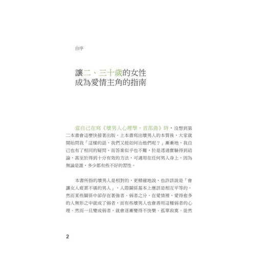 讓二、三十歲的女性成為愛情主角的指南總是為男人遍體鱗傷嗎? 面對男人,你可以有新的態度!不入虎穴,焉得虎子,想收服壞男人,你得先搞懂壞男人!