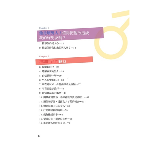 他是壞男人!值得把他改造成我的好男友嗎?該如何說出他想聽的話? 如何讓自己更有魅力?怎樣的女人才能勾住男人目光?那樣的行為令男人厭惡?如何巧妙的讓男人吃醋心癢癢?