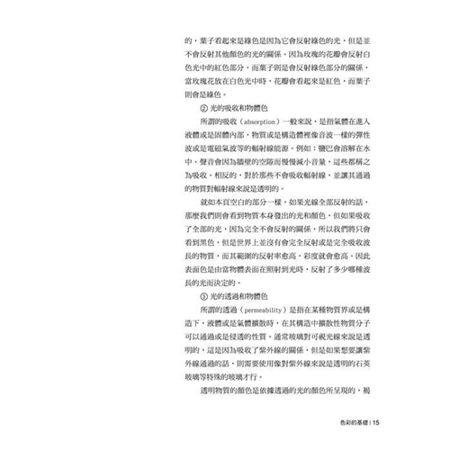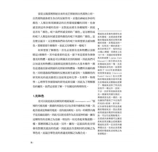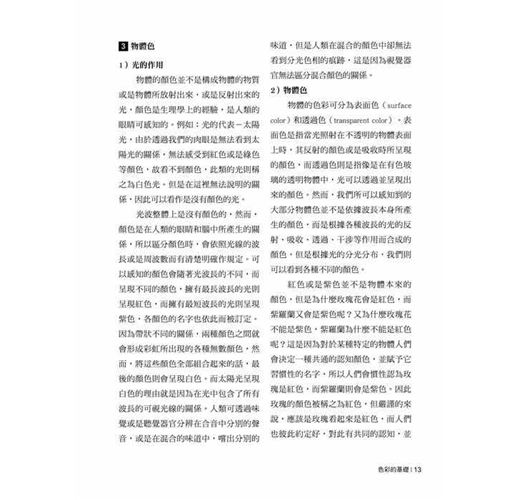 本書是基礎色彩教育用書,透過理論以及實習,希望能幫助大家了解基礎的色彩學,並在各個領域中加入了基本的說明和實驗、實習的課題,這些課題都以生活周邊常可以看到的色彩現象等實際例子為中心所構成,希望透過這種方式能引起大家對色彩的好奇心以及興趣。另外在本書中也包含了有關電腦的數位色彩原理的內容,透過本書也能夠了解到在現代設計的領域中,佔有相當重要地位的電腦基本常識。同時作者也以透過長久累積的教育經驗、參與色彩講習會、學會論文集、演講邀請以及國外的色彩講習會等活動所獲得的資料為基礎,舉出了多樣的事例和理論,本書想必能夠讓大家對現代設計的核心色彩和熟悉以相關造型學習調和的色彩感覺有所幫助。想了解色彩學嗎?這不只是一本專業的色彩原理書,更是本一看就能懂、一看就能上手的色彩原理書。結合一般教材的圖表與生活中的例子,讓你更輕鬆更快學會。