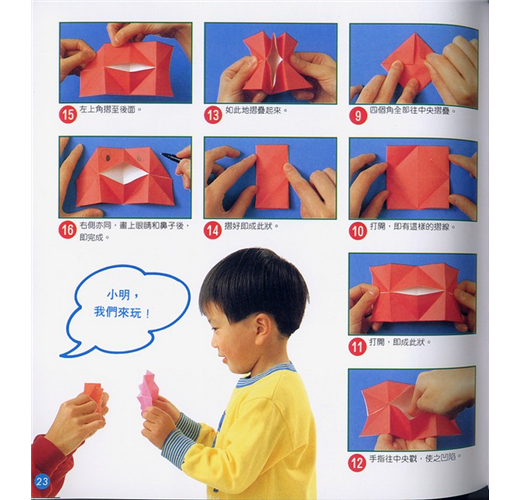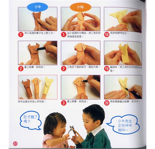 「汪~汪~」好可愛的狗狗,要好好愛護牠喔!還有好多動物可以陪伴你,動手做做看吧!收錄豐富的動物摺紙類型,從遊戲中培養對學習的興趣。每個步驟的引導都可以幫助孩子的邏輯思考;完成的摺紙作品,請好好的稱讚孩子吧!這能使他建立學習的自信感,並主動學習。