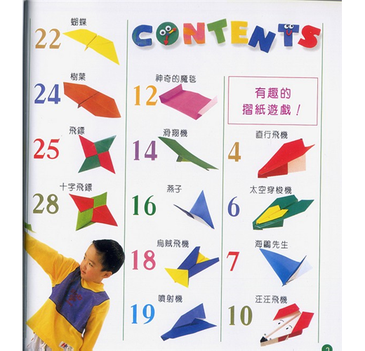 「咻~咻~」飛機在天空中自由自在的飛翔,好羨慕啊!設計自己喜歡的飛機造型,一起跟朋友比賽誰飛的遠吧!收錄豐富的飛機摺紙類型,從遊戲中培養對學習的興趣。每個步驟的引導都可以幫助孩子的邏輯思考;完成的摺紙作品,請好好的稱讚孩子吧!這能使他建立學習的自信感,並主動學習。