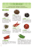 ◎【川菜調味舖】詳盡介紹了川菜最重要的主角---辣椒,讓你運用各式辣椒做出不同辣味口感的川菜,並將必用的調味料做一圖文說明,讓你取材容易,使用方便。