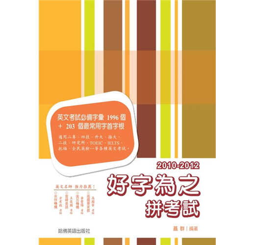 ◆著有好字為之拼考試、高階閱讀大全、精挑ENGLISH字源…等數十本書。