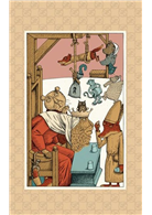 貓提伯特跳了出來,他氣壞了。「香腸的故事已經不新鮮了。」他說:「科托沒講出來的是,被叼走的是我的香腸,是我有天夜裡從睡著的磨坊主人那裡偷來的,科托將它從我這裡奪去。科托自己才是小偷!」