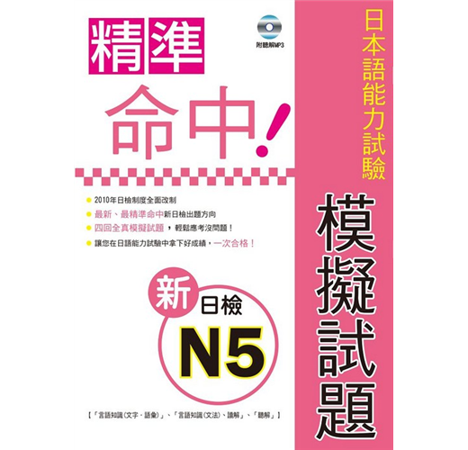 《精準命中新日檢N5模擬試題》是因應自2010年7月開始實施的新制日本語能力試驗,