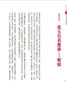首先我們要瞭解,眼白部分與五臟中的肺臟有關;而黑色的眼珠部分,則與肝臟有關;位於眼珠中心的瞳仁部分,則和腎臟有關;兩眼外側尾端和眼角部位的紅色血絲,與心臟有關;眼皮和脾臟(消化系統)有關。因此,唯有五臟功能全都順暢運作時,眼睛也才會健康。