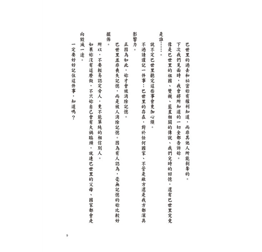 「從小我們三個人就感情融洽,常玩在一起。不過與生俱來擁有藍星印記的巴世里,隨時都有被盯上的危險,所以被嚴禁踏出城堡外一步。某天,巴世里不顧一切想跑出城外,還激動的胡鬧耍賴。我父親在於心不忍之下,偷偷帶妳去城外玩。喜悅萬分的巴世里,和我跟秀人一起在河邊玩水、嬉鬧奔馳於原野之間。」