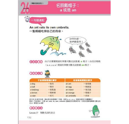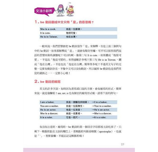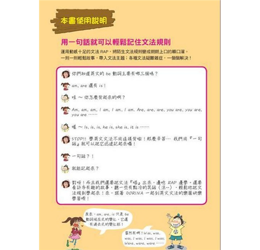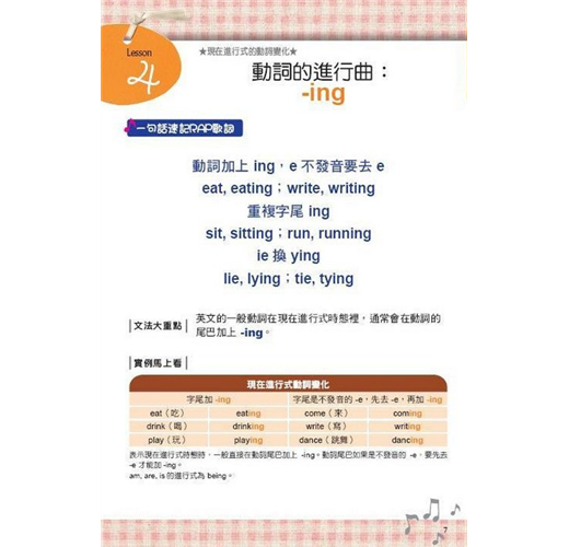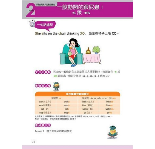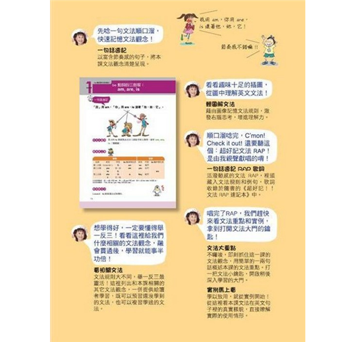 以富含節奏感的句子,將本課文法觀念清楚呈現。搭配趣味十足的插圖,一句話就要你把文法重點記起來!