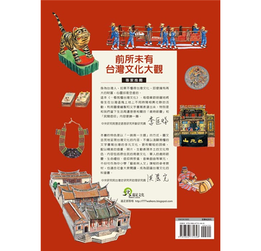 本書的特色是以「一跨頁一主題」的方式,圖文並茂地呈現台灣文化的內涵,不僅以淺顯易懂的文字書寫台灣的多元文化, 更用簡短的詞條,配以精美的插畫、照片,生動表現本土的文化特色。內容包括原住民的南島文化、華人的歲時節慶、生命禮俗、信仰與祭儀、音樂戲曲等單元,不但可作為中小學「藝術與人文」課程的參考教材,也適合社會大眾閱讀,成為認識台灣文化的科普書。