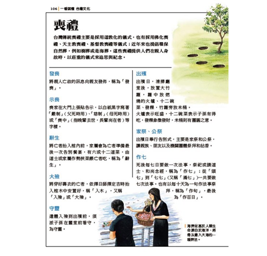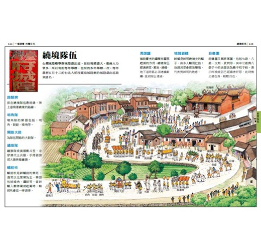 這本《一看就懂台灣文化》,每個章節明確地將發生在台灣這塊土地上不同時間相異社群的活動,利用圖像繪製和文字書寫表達出來。特別是和我們當下生活周遭息息相關的「歲時節慶」和「民間信仰」內容更勝一籌。