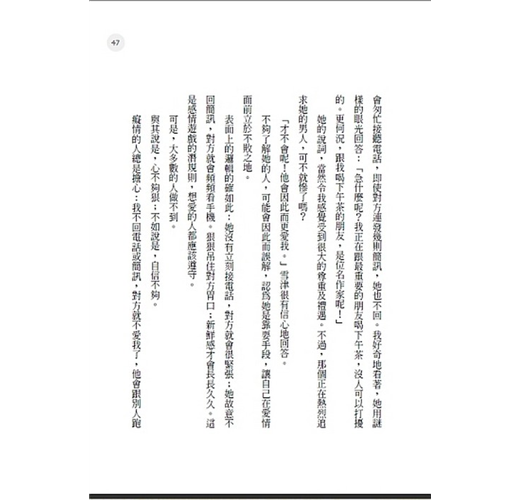 換句話說,即使和對方發生性愛,未必代表兩人已經有足夠程度的了解,到可以互許終身的時候。尤其,當一夜情盛行得像吃宵夜那麼輕率,衝動的性愛關係,絕對不等同於天長地久的許諾。