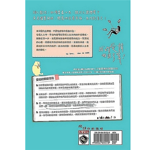 如此豐富的生活歷練,讓他總是靈感不斷。他期許自己求新求變,帶領讀者一起吸收新知。《我的愛情,我說了算!》是他所出版的第85號作品,獻給曾經在感情中迷惘、以及樂於找到方向的朋友。希望有助於你啟動心中的幸福導航,主控人生的發展方向。