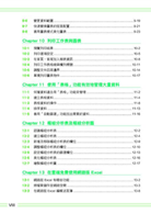※ 高效率的工作表建立與美化技巧、活用公式與函數處理運算問題、保護重要檔案不被任意竄改,以及資料的分析、排序、篩選、歸納技巧,並繪製出專業又美觀的統計圖表。