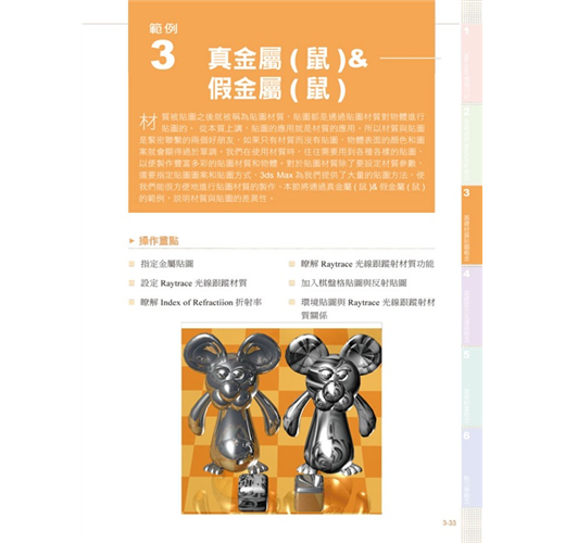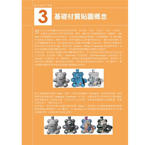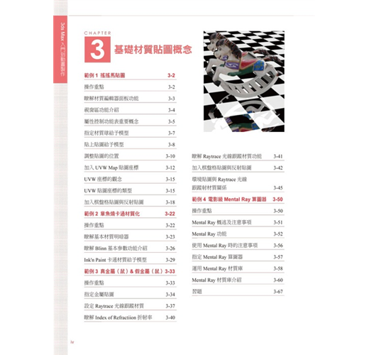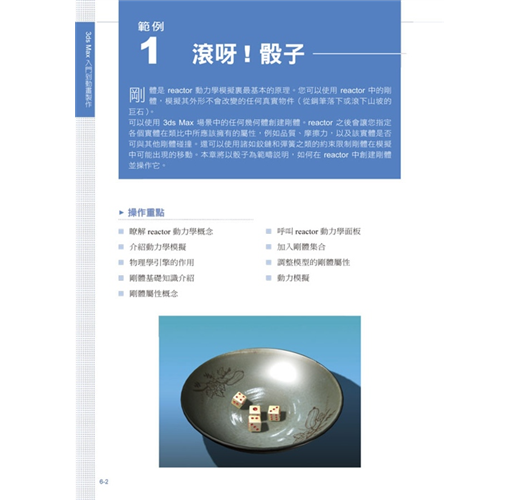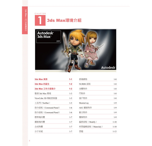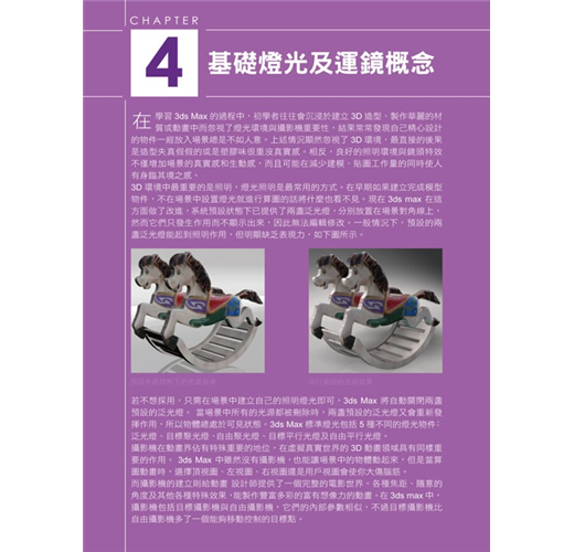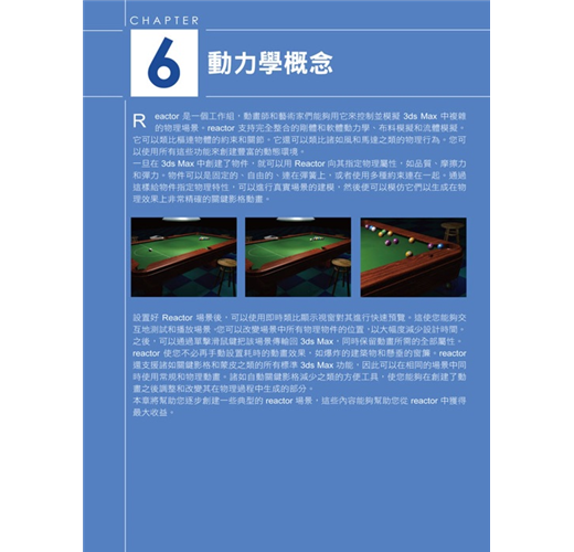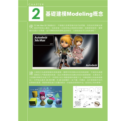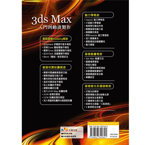 全書共分為建模、貼圖材質、燈光、攝影機、動畫及動力學等六大部分,以範例由淺入深的講解說明,帶領讀者進入3D世界。在進階攝影運鏡部分,詳細解說運鏡設置工具的應用和運鏡相關資訊,為了使讀者能夠接觸更多動畫相關知識,這部分還涉及到動力學的原理,通過這部分內容的學習,可以使讀者全面瞭解3ds Max建模、材質貼圖、動畫算圖以及運鏡處理的相關知識。