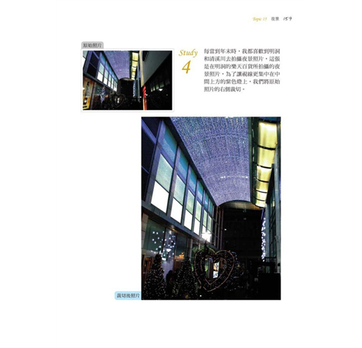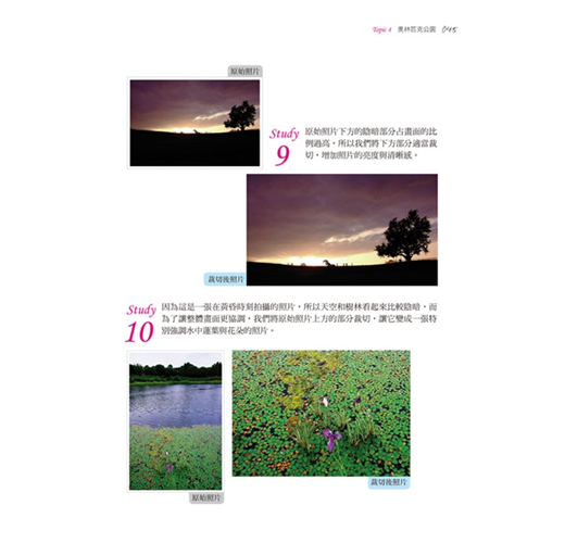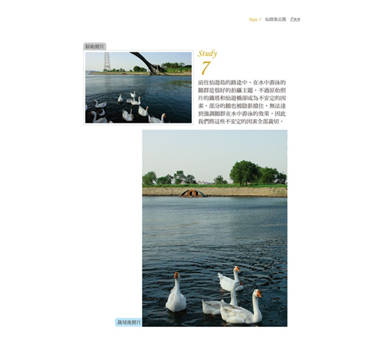 本書為了讓攝影初學者快速學習風景寫真的拍攝方法,以各個範例的「原始照片」及「裁切後照片」進行說明,引導大家瞭解哪些是照片中不需要的要素,並進行適當的裁切,這就是構圖的減法法則。而照片的加法法則將可讓大家學習到增加某個副主題,就能輕易增添效果的方法。