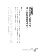 這本《一定要懂的就醫&住院醫療常識》,則是更實際的「教戰守則」,書中大多以具體的例子來告訴我們就醫及住院時的醫療常識。書中張醫師以她特有的幽默,提出很多「考題」,讓讀者在「考試」的過程中,了解自己的醫療常識到底夠不夠。讀者往往會發現自己的回答是錯誤的,然後在張醫師的分析當中,重新獲得醫師、醫院、就診、健檢、住院……等的必備常識。