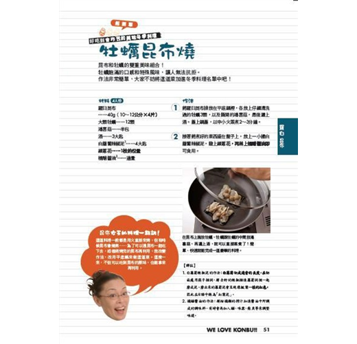 昆布在日式料理中擁有不可或缺的地位,只要搞定昆布,日式料理不熟也有七分像。翻閱這本書的同時,讀者除了可以在最短的時間內認識昆布、運用昆布之外,還可以明顯感受到作者柴田理會對於昆布的無限熱情。昆布是作者家鄉的特產,更是她個人的味蕾記憶和成長點滴。我非常佩服作者對食材的認真態度,也很慶幸因為這本書的關係,讓我以不同的眼光與角度,重新認識昆布這樣好東西。