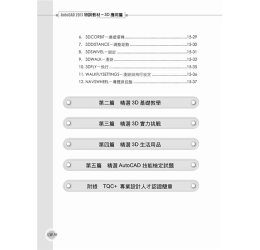 所有讀者 能在循序漸進的範例技巧教學中,更順利的通過TQC之AutoCAD 3D檢定