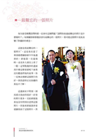 這本書裡我也將提出婚禮攝影中很重要的三個主題:「有故事的婚禮紀錄、補抓情感、記錄家族歷史的大合照。」