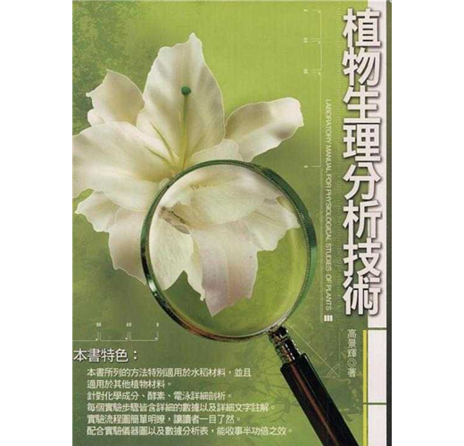 本書裡的分析技術,涵蓋「化學成分分析」、「酵素分析」與「電泳分析」三個部分。每一種分析技術都經過一試再試。本書最大的目的,是希望能夠幫忙一些對「植物生理」有興趣的學生或研究人員,在他們的研究過程中得到一些支援,進而使他們能夠體會到「植物生理」其實是一個很有趣的領域。
