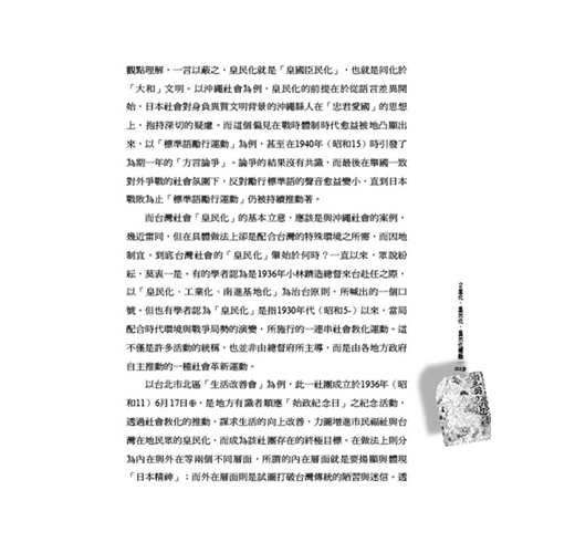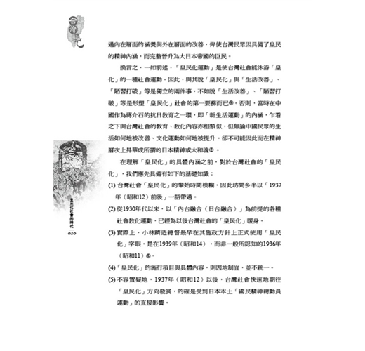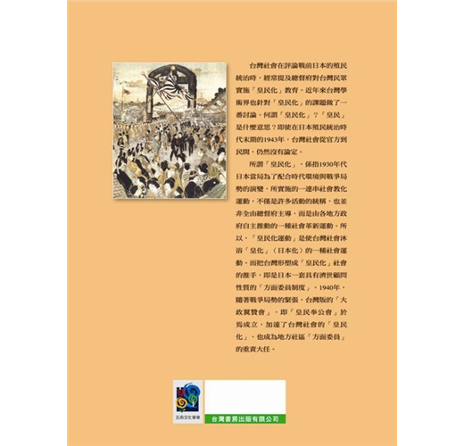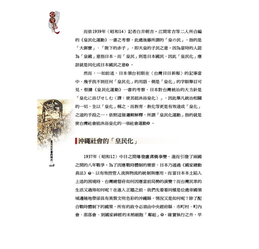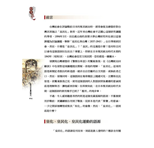 以下,本書將從「皇民化」社會的語源、本質、歷史背景與變革等發展脈絡,做一個系統性介紹。