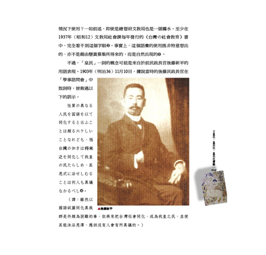 (譯:雖然以國語試圖同化異族群是件頗為困難的事,但將來把台灣社會同化,成為我皇之民,並使其能沐浴恩澤,應該沒有人會有所異議的。)
