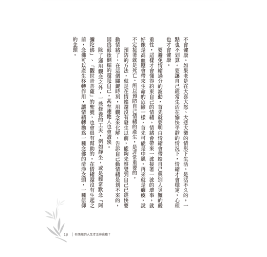 並以佛法的觀念和方法,幫助我們在面對各種情緒干擾時,